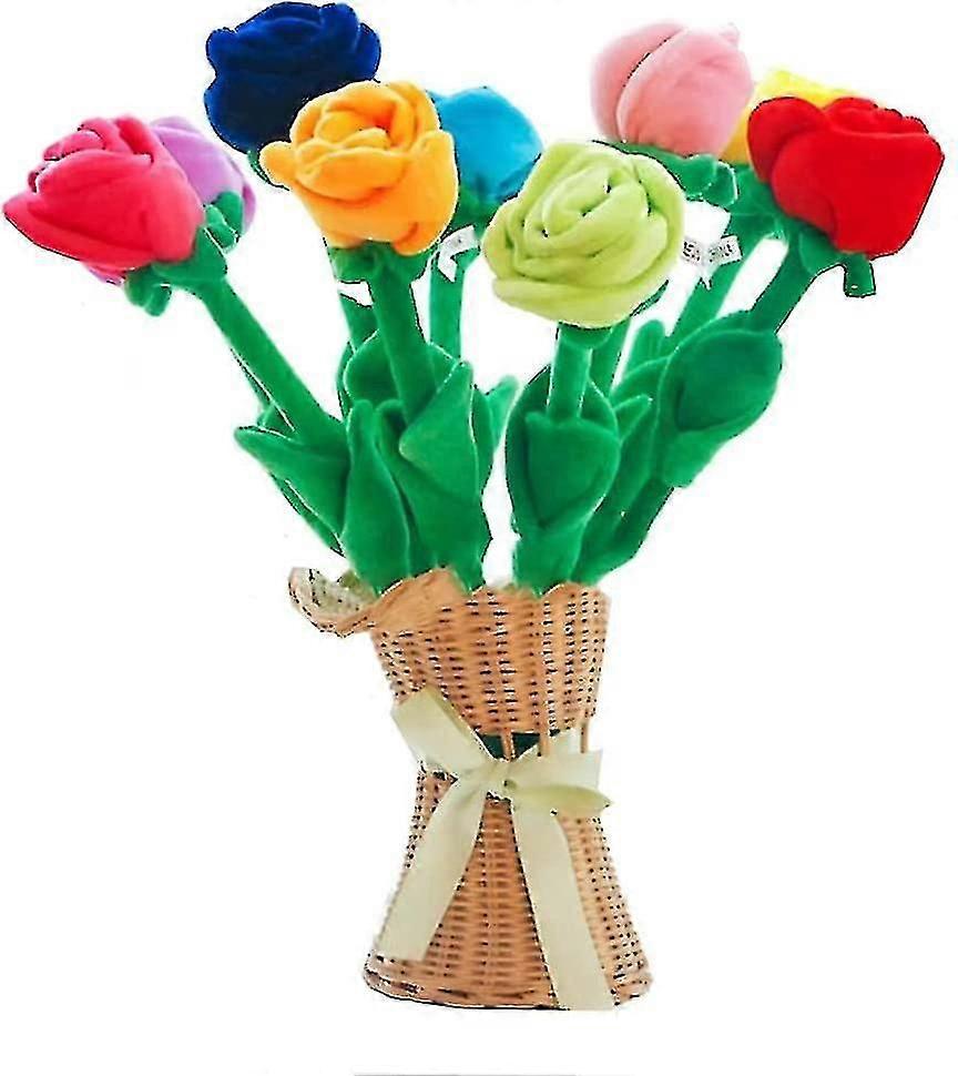 This 7-piece plush rose set features bendable metal-wire stems wrapped in soft velvet fabric, allowing flexible shaping for creative arrangements. Measuring 12.5" long with 2.5" flower heads, these artificial blooms come in 7 fade-resistant colors: pink, gold, orange, red, rose, blue, and purple. Ideal for home decoration, the bendable stems easily attach to curtains, stair rails, or table centerpieces. Create lasting DIY bouquets for weddings, baby showers, or anniversary celebrations without water or maintenance. Safe plush material makes these flowers perfect for children's room decor. Package includes 7 roses with reinforced stem connectors that prevent petal shedding. A thoughtful gift option for Mother's Day, Valentine's Day, or housewarming occasions.
