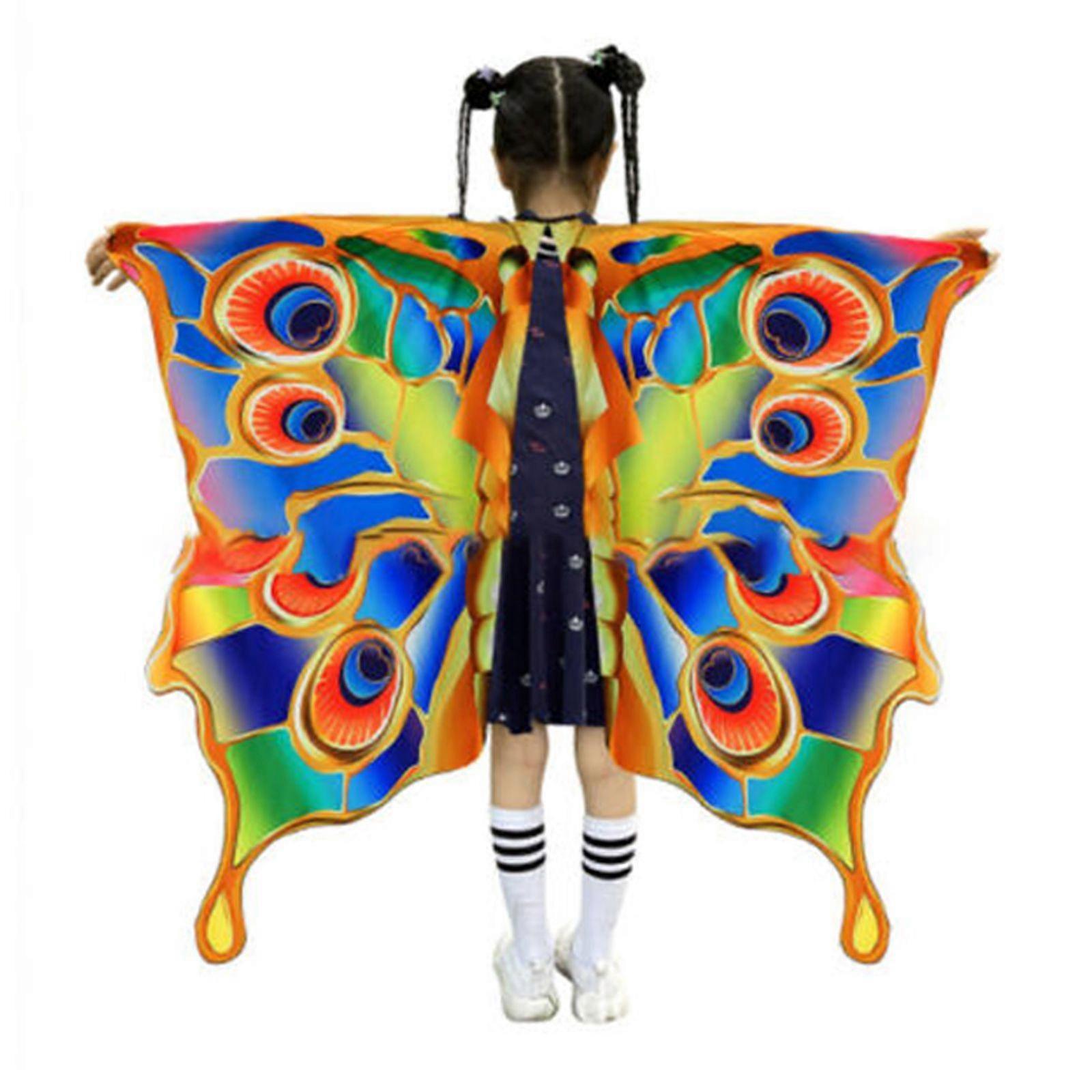 Best discount 30% Kids Butterfly Wings Cape Girls Fairy Shawl Pixie Cloak Fancy Dress Costume NEW
