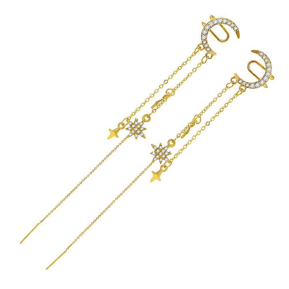 Moon and Star Dangle Earrings, Lightweight Clip Design, Chic Rhinestone Ear Jewelry for Women, Non Piercing Ear Bone Clips for Parties and Special