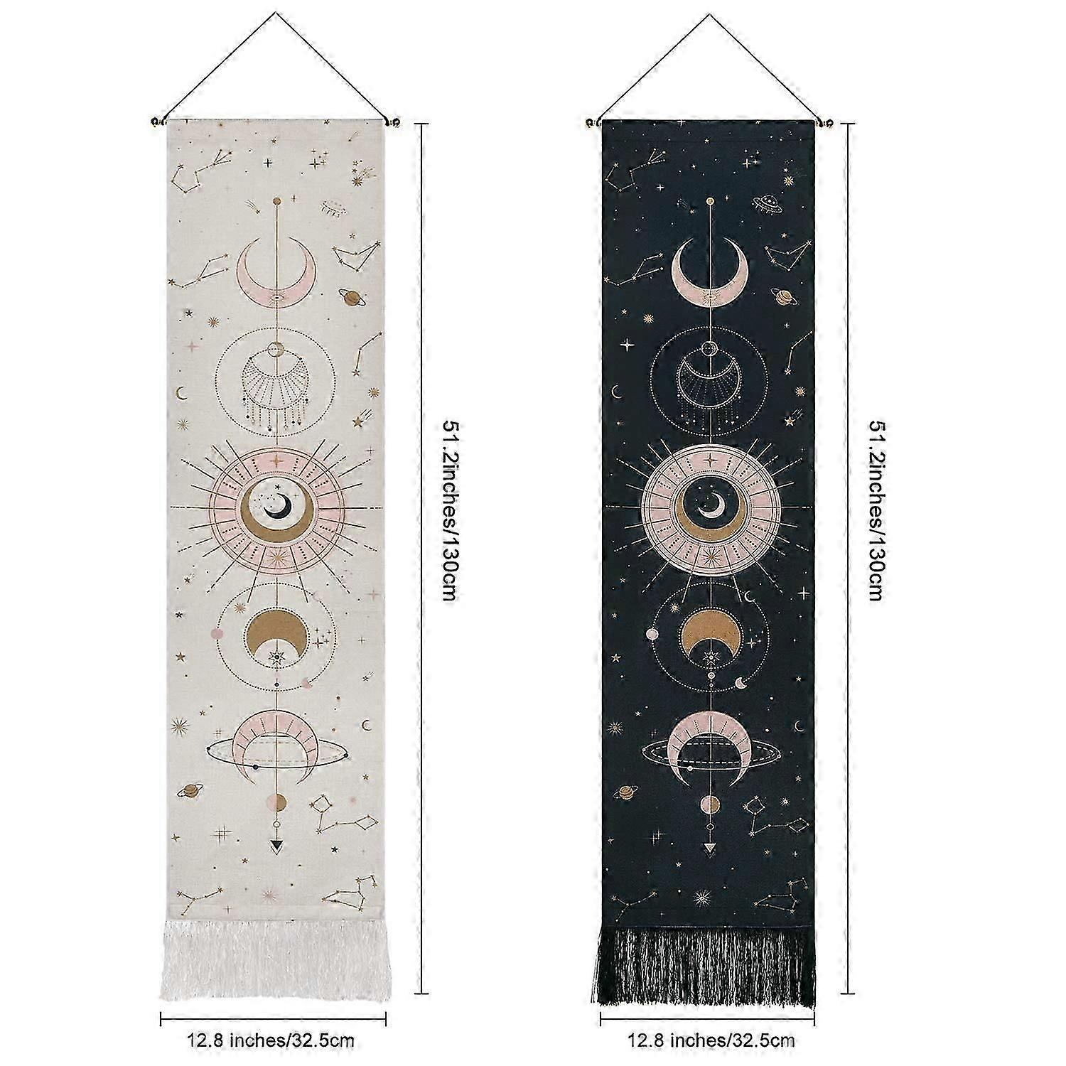 Moon Tapestry Stars Tapestries Psychedelic Wall Hanging Decoration Tapestry for Bedroom 51 x 13 Inch (130 x 32 cm), Black + White