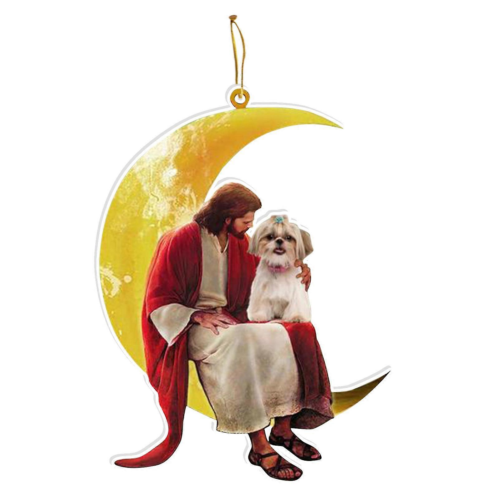 Christmas Animals Sitting On The Moon Pendant,christmas Outdoor Decorations Wood Christmas Ornaments Window Wall Hanging Ornament Living Room Decorati