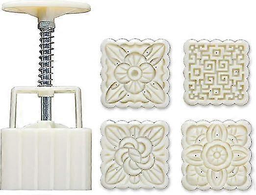 Moon Cake Mold,5 Pcs Oriental Baking Mold,Square Flower Pattern Hand-Pressure