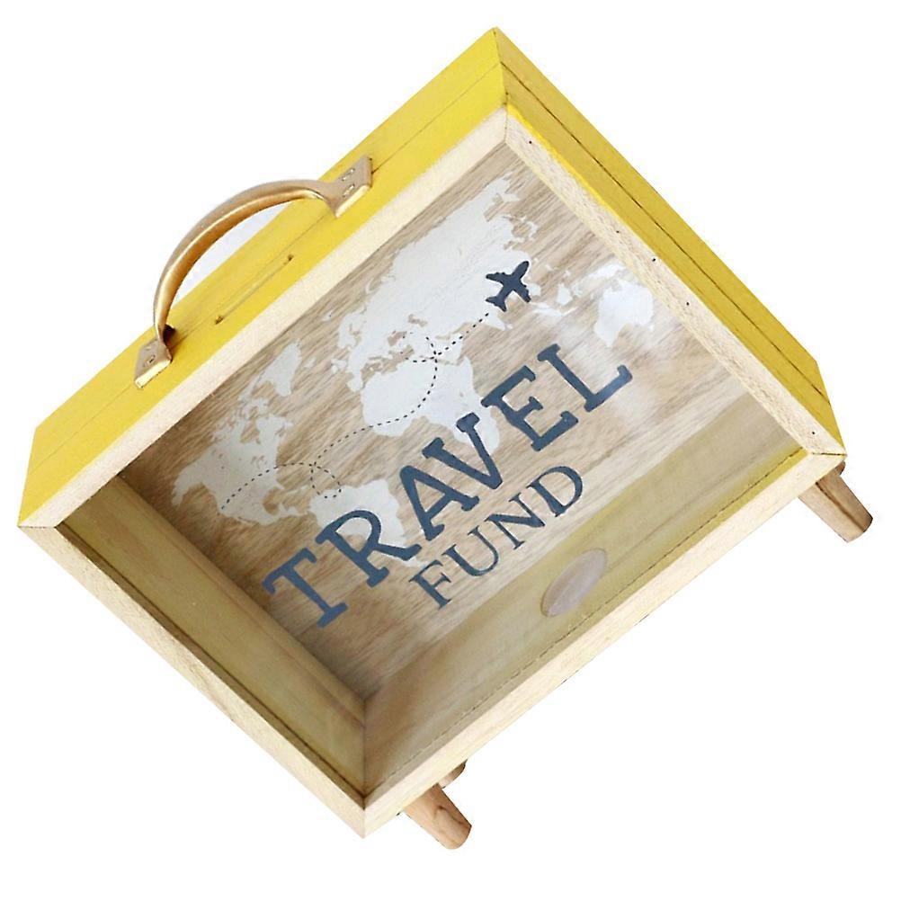 Wood Money Saving Box Wooden Coin Box Bedroom Decorative Standing Storage Piggy Bank Yellow 21x20.5x7 Cm 1Pack