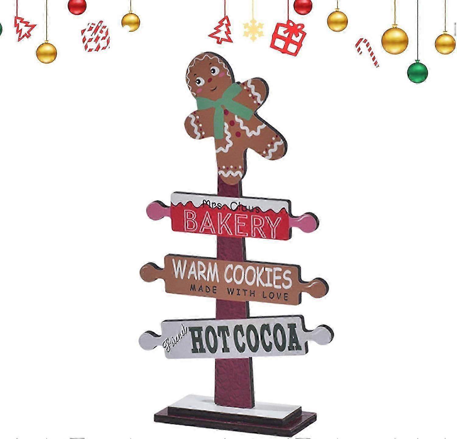 Wooden Tree | Christmas Tree with Gingerbread Man Figure on Top - Centerpieces for Tables, for Showcases, Desk Shelves, (A)