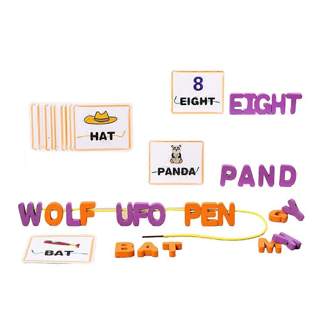 Wood Threading Board Toy Wood Spelling Word Toy for Kids English Letter Learning Educational Toy for Develops Patience