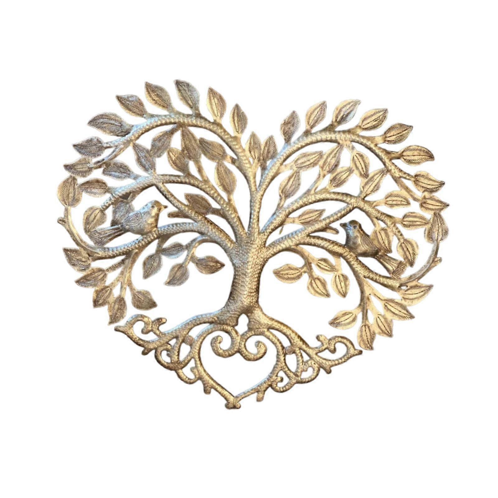 Tree Birds Metal Wall Decor Heart Decor Modern for Backyard Patio Front Door Golden
