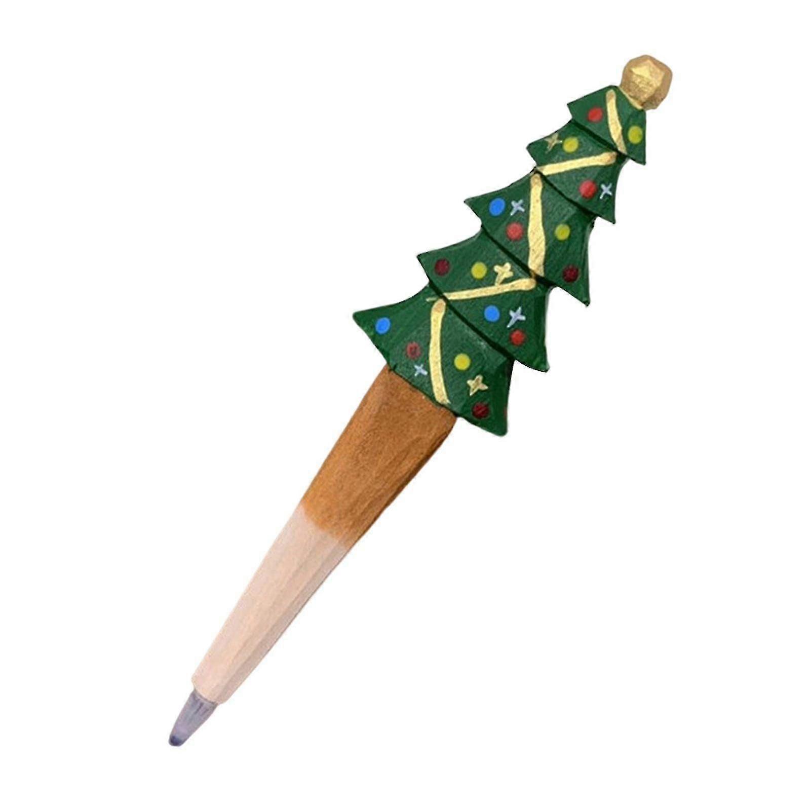 Wood Carved Cartoon Animal Gel Pen with Christmas Theme Styling, Refillable Gift for Animal Lovers