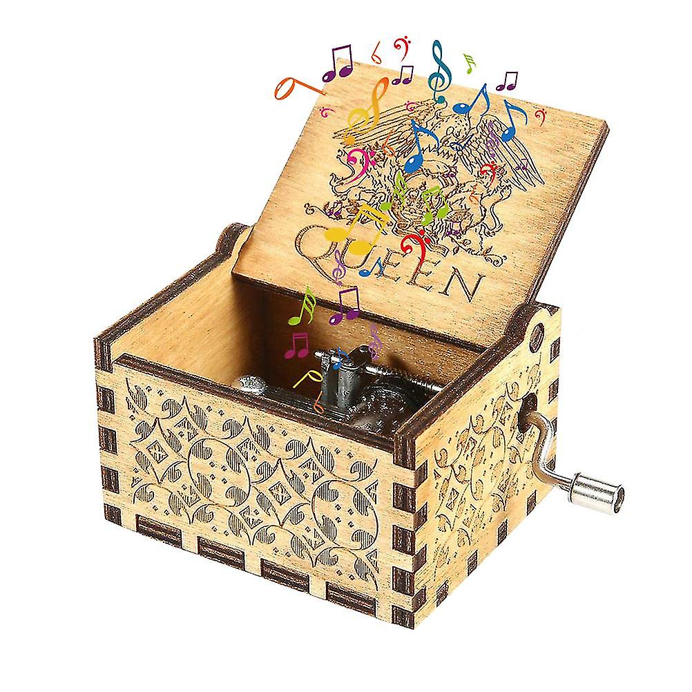Wooden Carved Music Box Retro Hand Crank Music Box Home Decoration