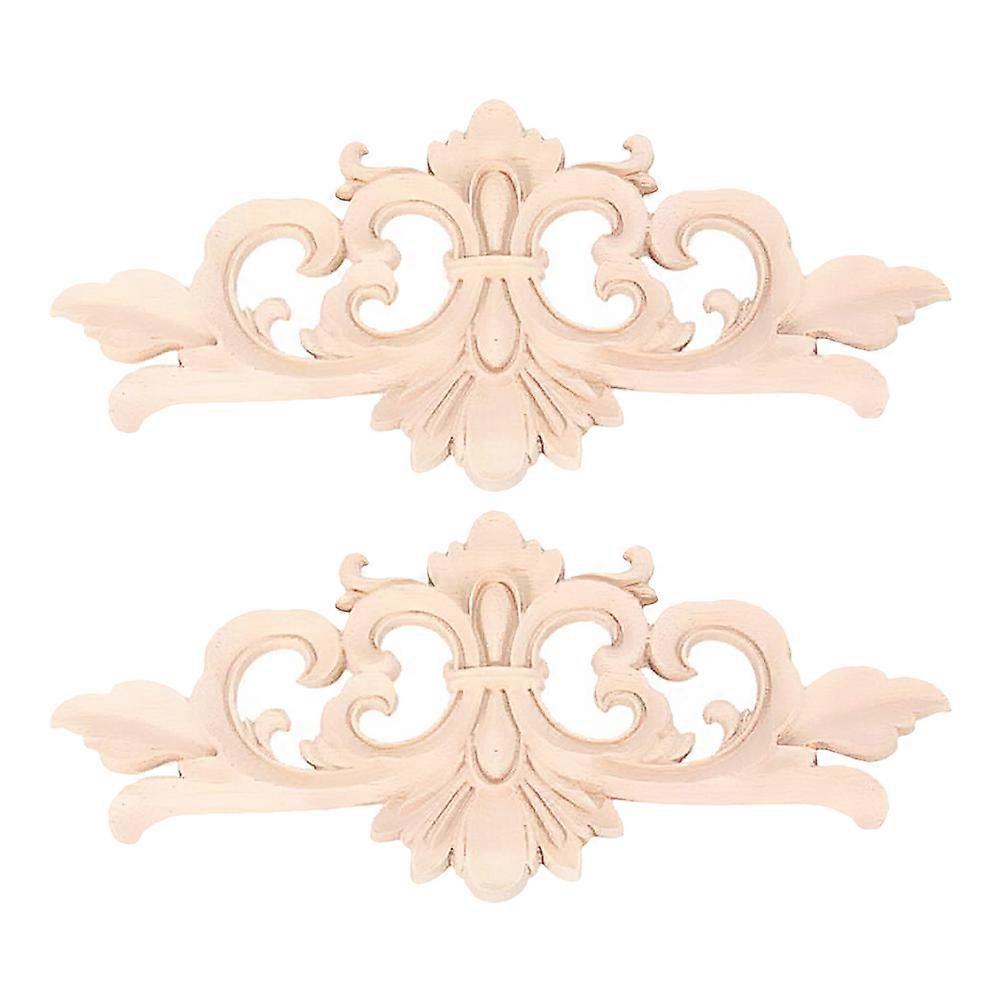Wood Carved Onlay Applique Furniture Decoration Homeowners Rectangular 2Pcs