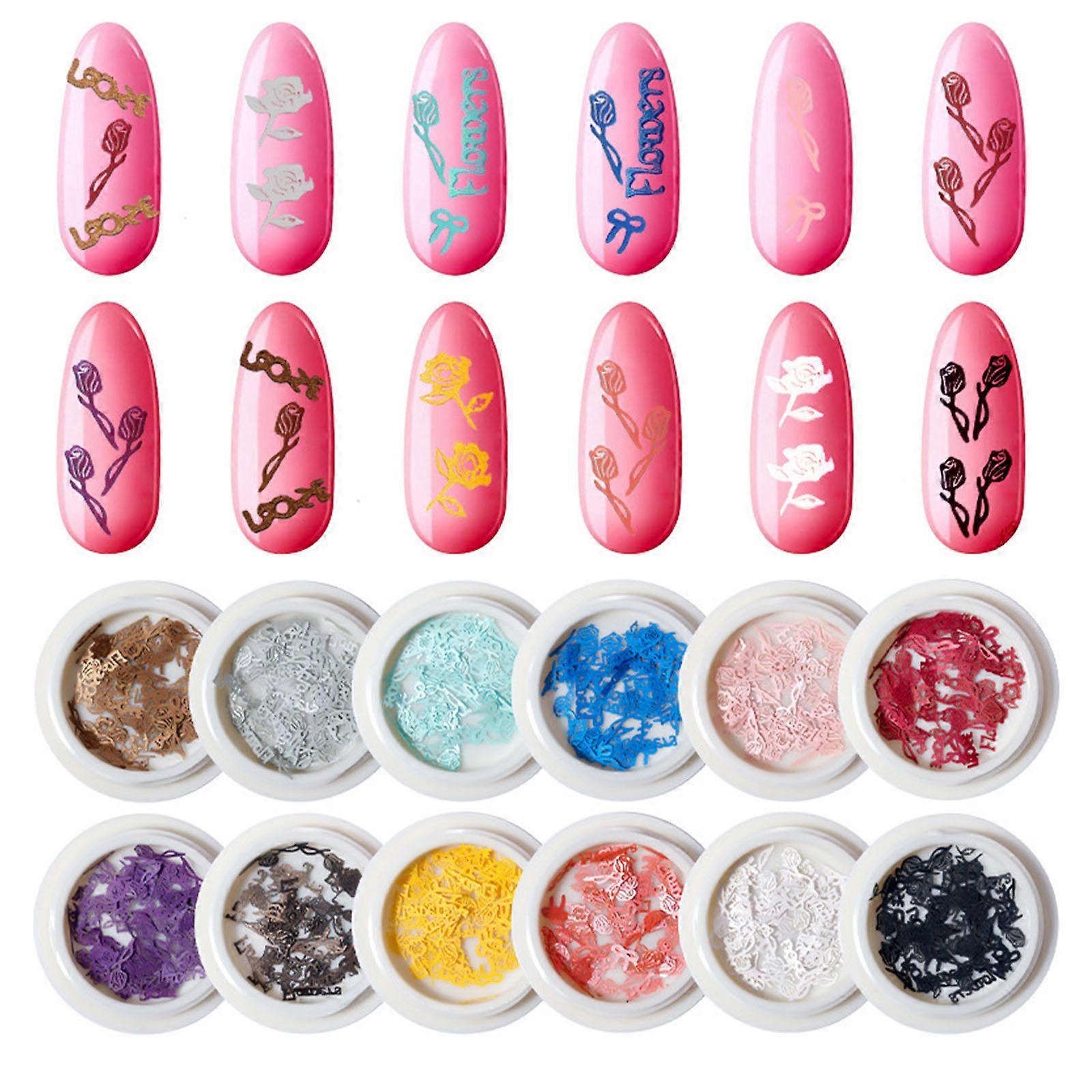 Wood Pulp Chips Rose Flower Nail Art Stickers Valentines Nail Glitter Confetti