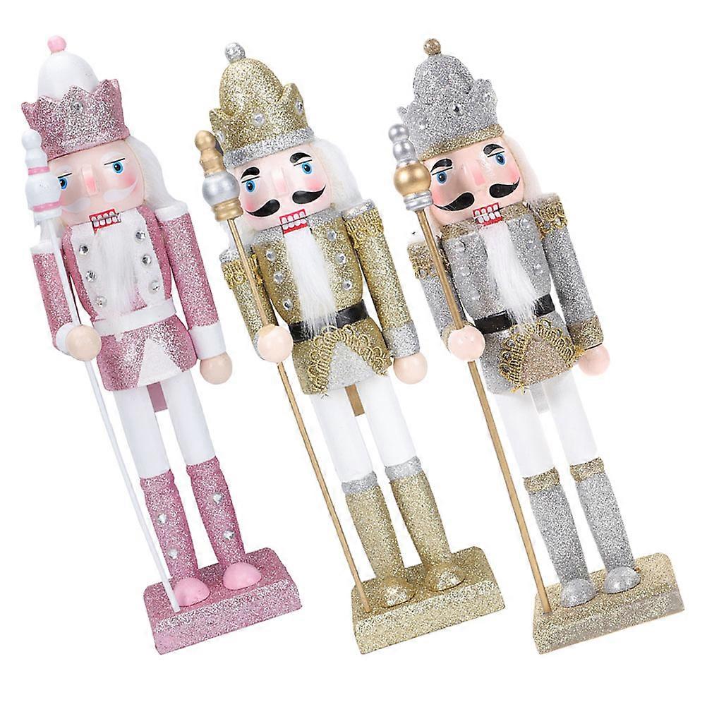 Wooden Nutcracker Soldier Christmas Ornament Decorative Item Bright Pink Gold 11.8×3×2.6in 3Pcs