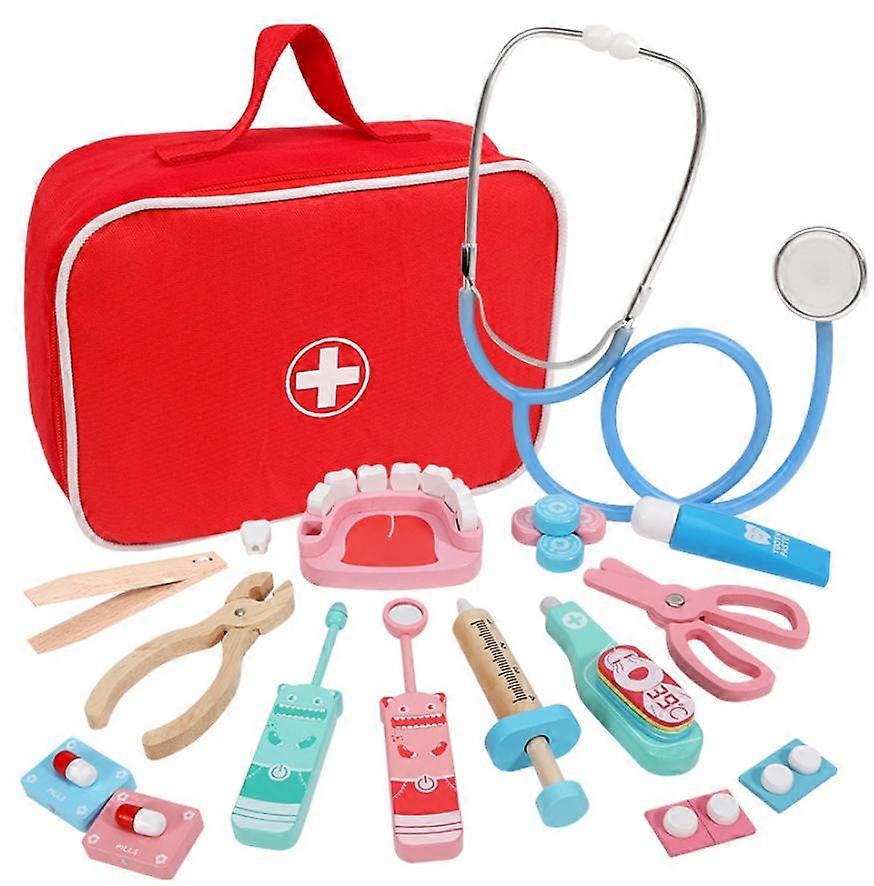 Wooden Pretend Play Doctor Educational Toy Medical Simulation Medicine Chest Set