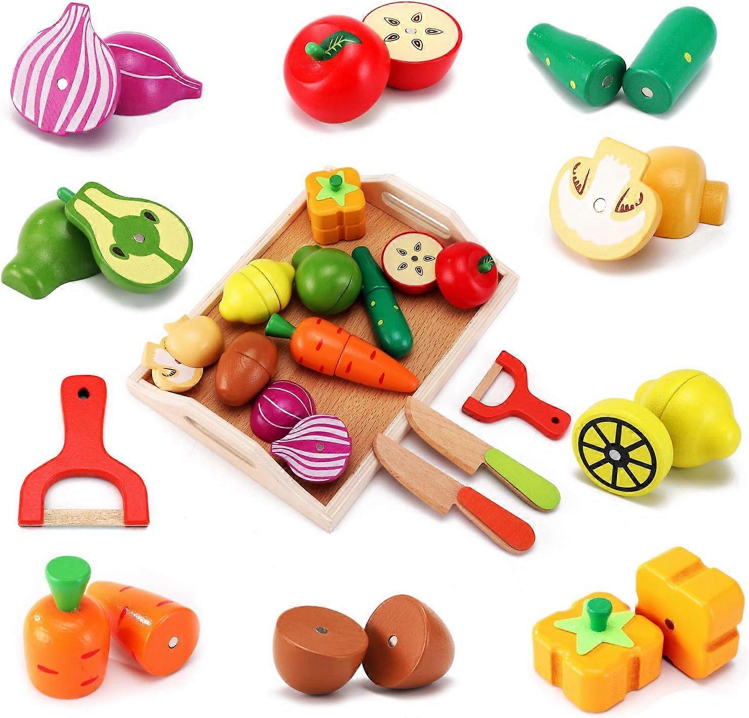 Learning Wooden Cutting Fruit Vegetables Set, Health and Safety ASTM Certified, Natural Wood Non-Toxic, Fun and Educational, for 4-6 Year Olds