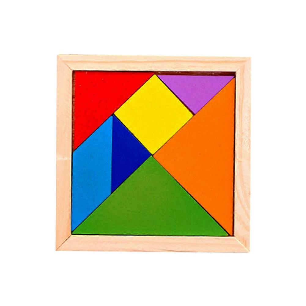 Wooden Colorful Tangram Geometric Jigsaw Puzzle Board Educational Toy Kids Gift