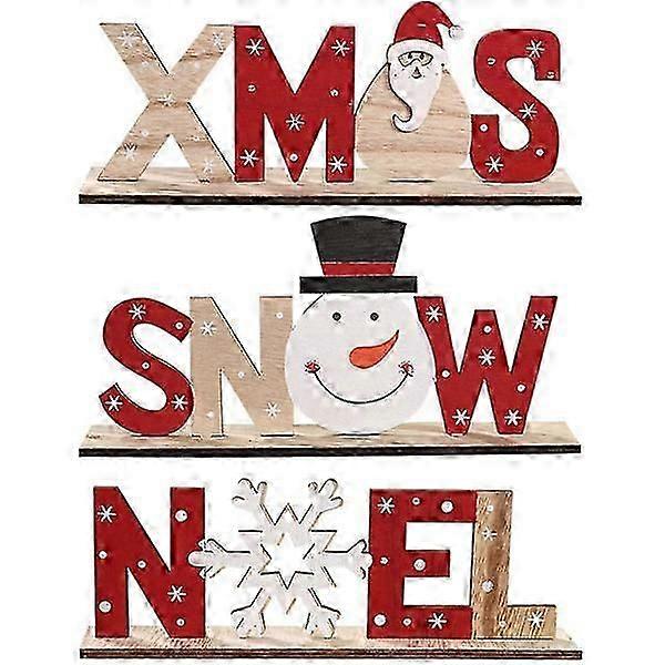 Wooden Christmas decoration, 3 pcs Christmas decorations, Christmas snow Christmas letter plaque Christmas table