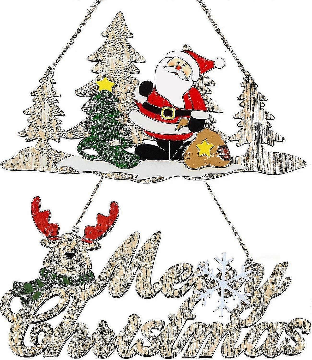Wooden Christmas Plaque Sign Christmas Door Wall Hanging Sign Santa Reindeer Wood Sign Ornaments Wood Christmas Tree Decoration For Christmas Home Ind