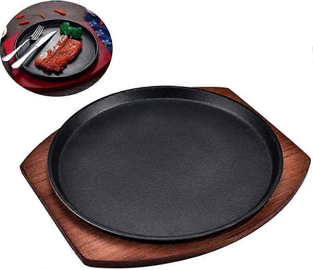 Safety Steak Plates Round With Wooden Serving Board, Pizza Pan Cast Iron Round, Hot Serving Dish Teppanyaki Pot Round Hard (Size : 19cm)(Red,Black)(1