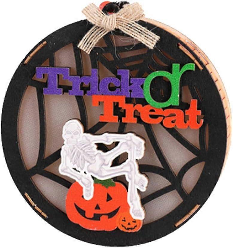 Wooden Halloween Hanging Light: Spider Web Treat or Trick Door Sign Light Up Pumpkin Pendants Skeleton LED Lamp for Halloween Party Supplies Indoor Ho