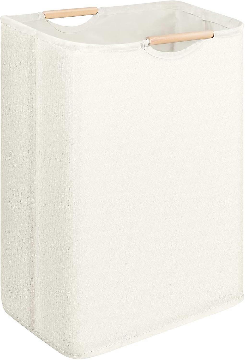 Foldable 60L Laundry Basket with Wooden Handles, Ideal for Bedroom and Bathroom