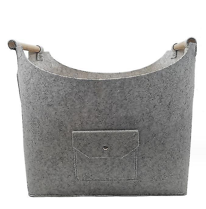 Large fireplace wood basket with wood handle - felt basket for firewood, shopping, and newspapers