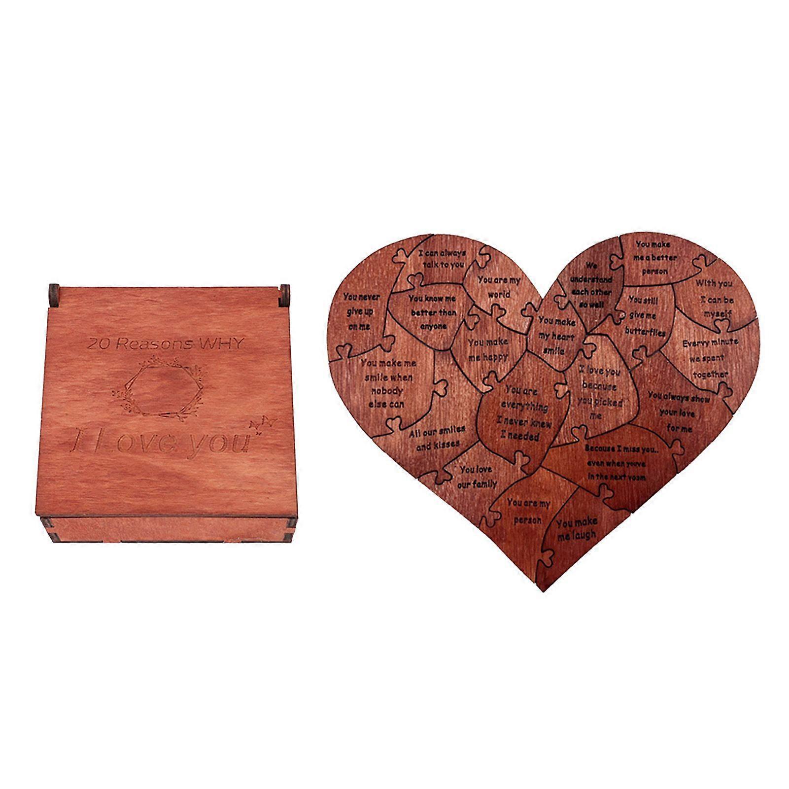 Wooden Heart Puzzle Valentines Day Heart Shape Puzzles Romantic Love Heart Puzzles with Box for Wedding Anniversary
