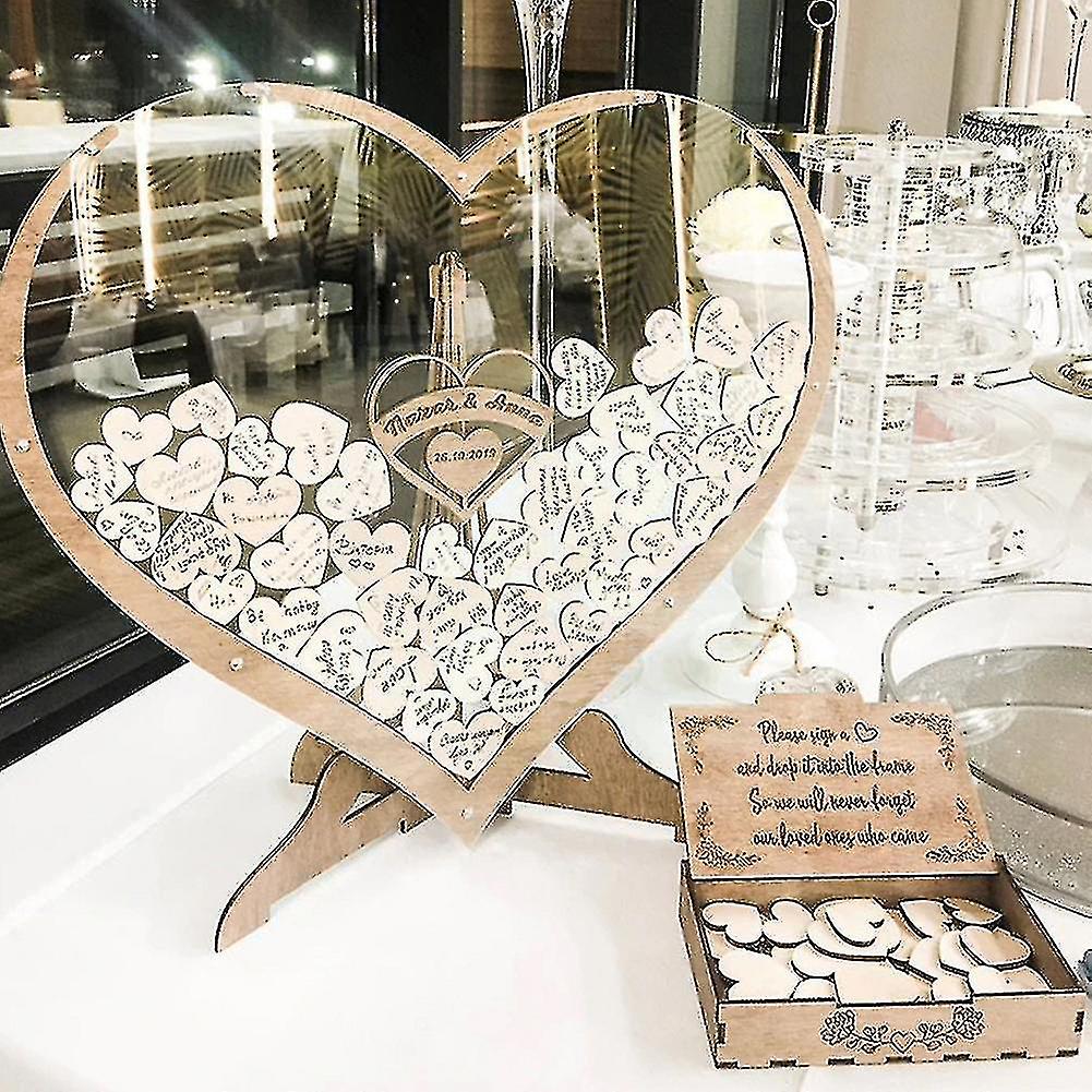Wooden Heart-shaped Wedding Guestbook Ornaments Transparent Drop 3d Antique Commemorative Box Signature TY