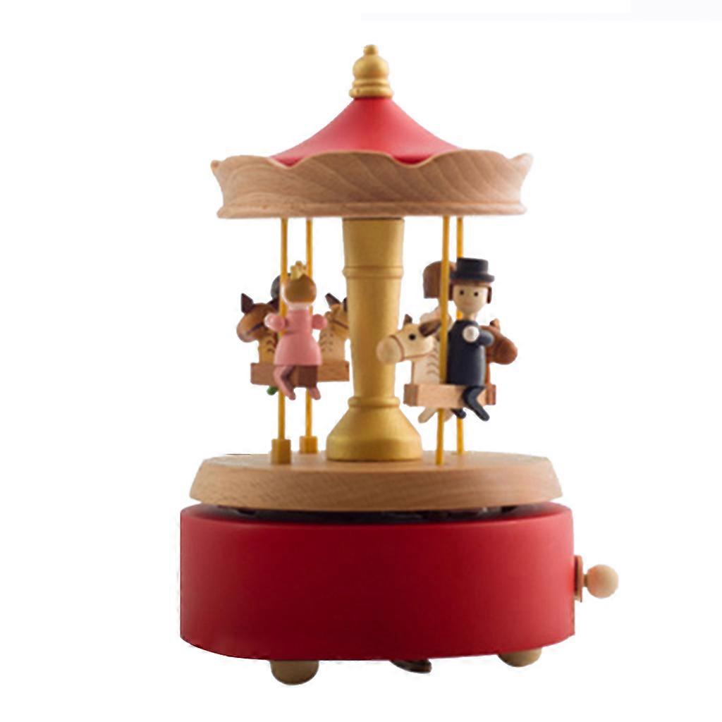 Wooden Lifting Rotating Trojan Music Box Home Decorations Gifts Musical Movement Toys Desktop Ornaments