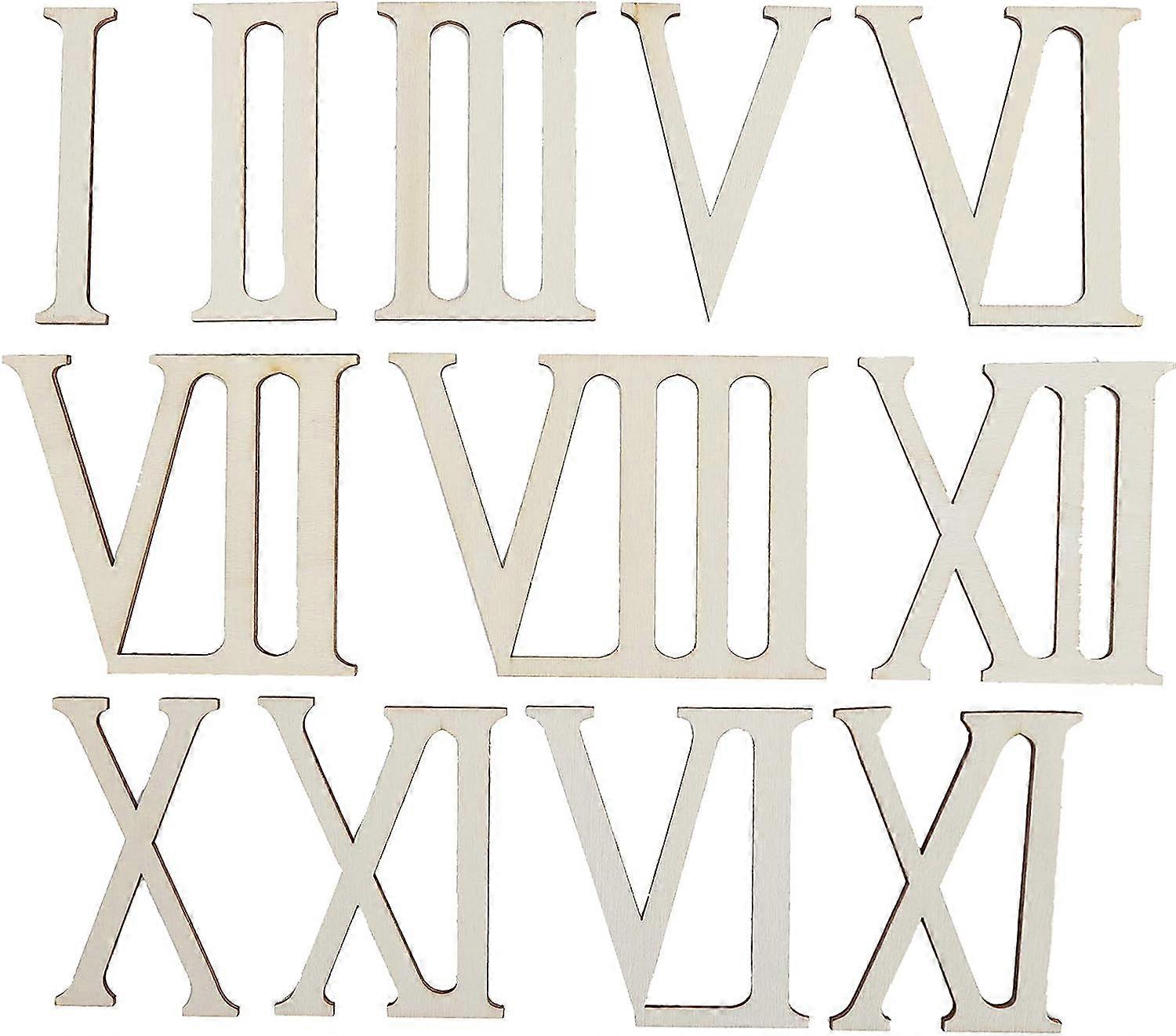 Wooden Roman Numerals, 12Pcs Unfinished Wood Letters Roman Numerals Shapes Wooden Slices DIY Clock Numbers Craft Decoration 7CM