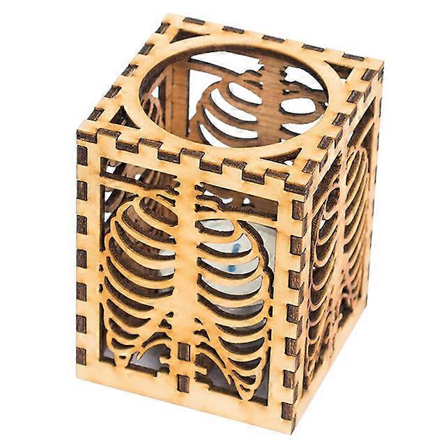 Wooden Hollow Candlestick Halloween Skull Rib Shadow Lamp Creative Party Decorationyellow1pcs