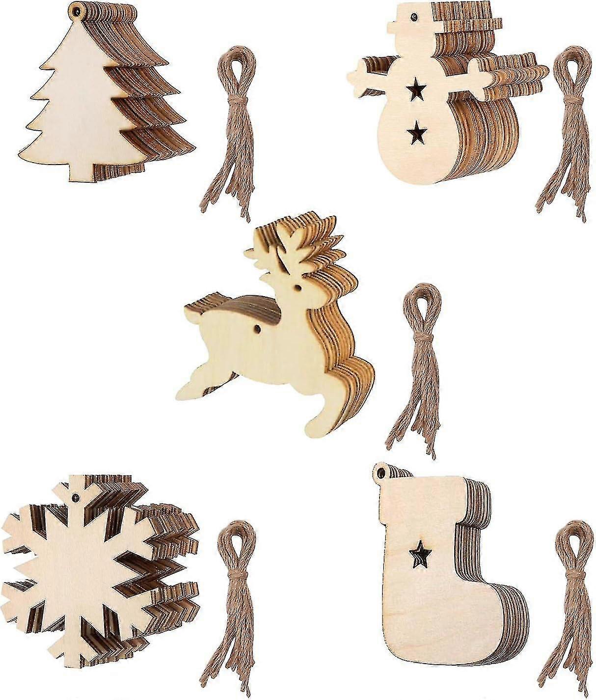 Wooden Hanging Decorations, 5 Types Diy Christmas Tree Decorations Crafts Wooden Tags Decorative Hangers For Painting With 50 Pcs Strings For Christma