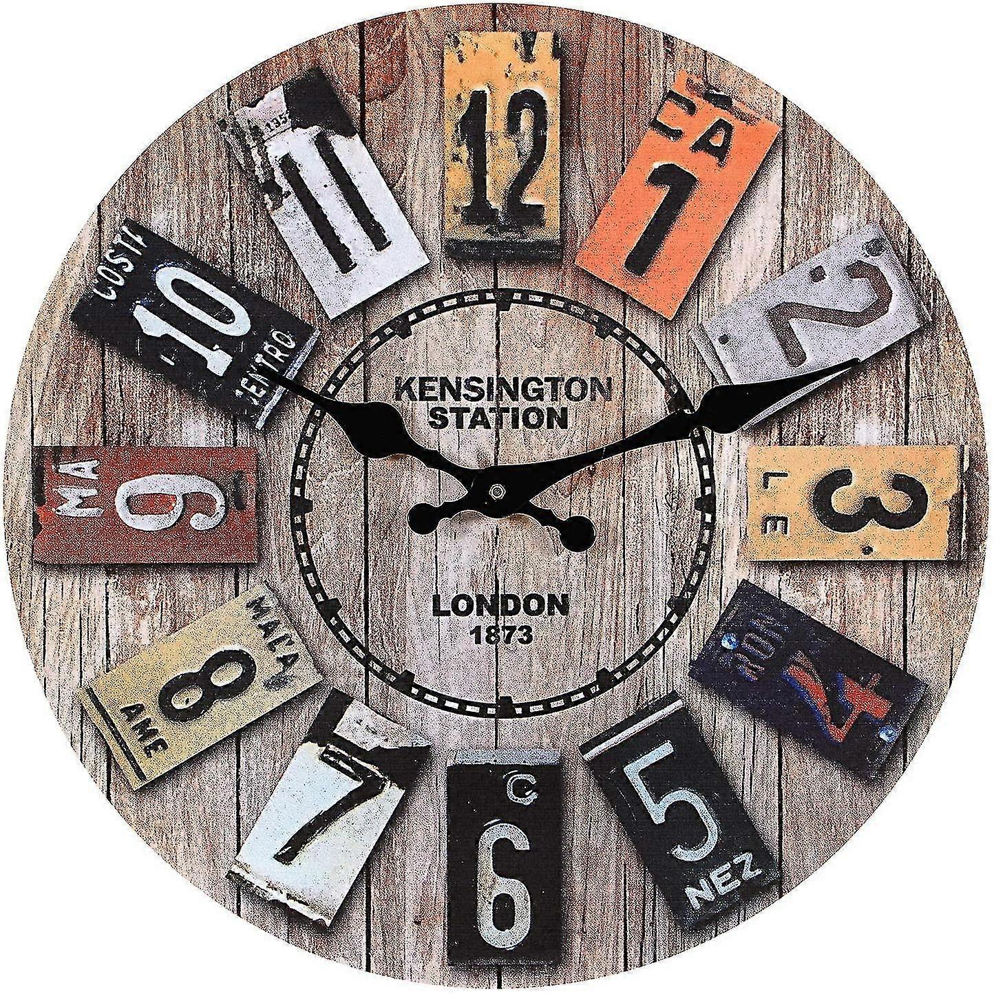 Non-ticking wall clock. High quality silent quartz movement for accurate time. Silent second hand, no ticking to ensure a good sleep or working environment, perfect for bedroom, living room, hallway computer, coffee,Office, conference room. Concise style: clearly legible, MDF wood, lacquered chipboard, covered with colored paper, large numbers, no frame or glass cover. Ideal for a range of French, Tuscan, Parisian, Country, Country,shabby, Mediterranean, antique and vintage beach, with a practical and beautiful combination.Requires one AA battery (not included). Please use ordinary carbon batteries for the clock, do not use alkaline batteries and rechargeable batteries, which may shorten the life of the mechanism and affect the time accuracy.Easy Installation: The included hooks allow for easy installation, just stick a small nail through the plastic hook and it'll be hanging securely on your wall in seconds.Easy to readThe wall clock is printed with large numbers. No matter where you are in the living room, you can read clearly and easily.Perfect wall decorationLarge dial with large Arabic numerals, easy to read. This wall clock can be hung on the walls of living room, bedroom, kitchen, office, studio, classroom, restaurant, cafe, office and bar.Ideal gift choiceYou can give it to your family and friends as a wedding gift or as a wedding gift.