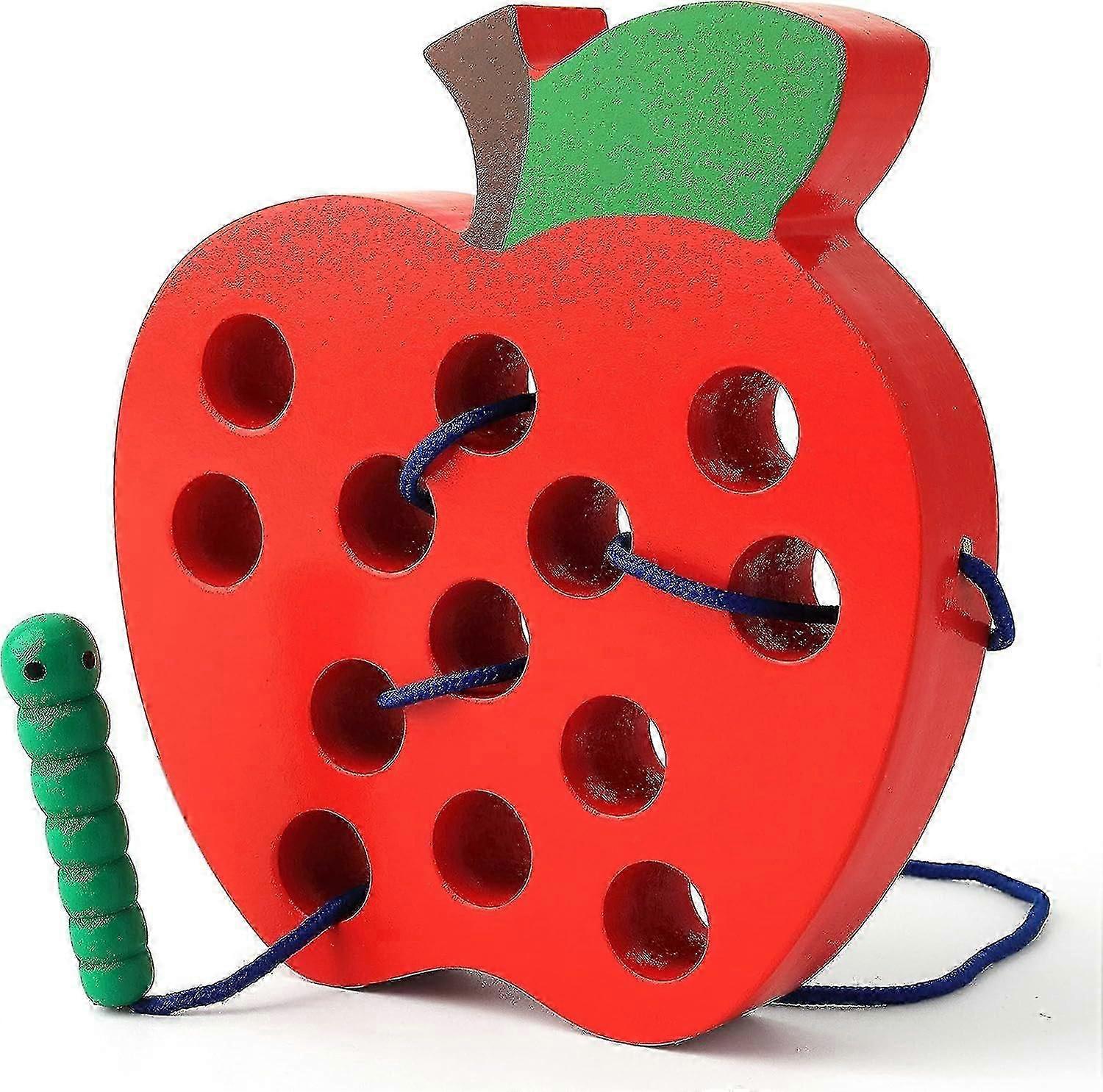 Wooden Children's Lace-up Toy, Thread Wood Apple Block Early Learning Education Gift