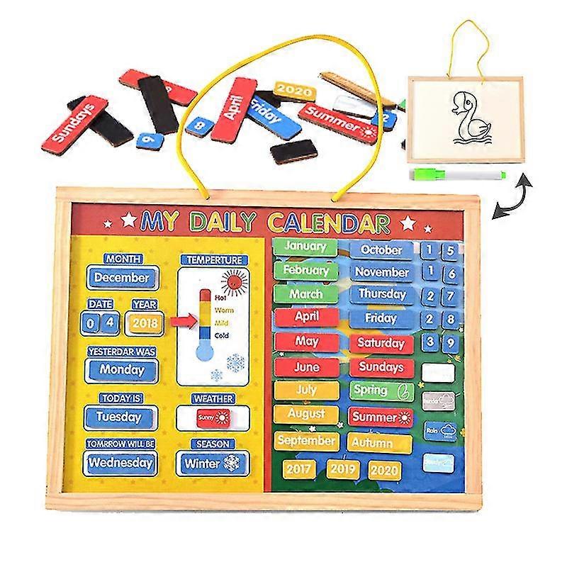 Wooden Kids Magnetic Weather Calendar Board Month Date Season Numbers Learning Early Educational Toy Kindergarten Teaching Aid