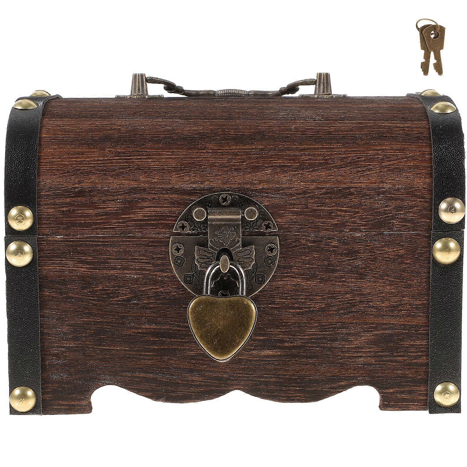 Wooden Treasure Box Creative Wooden Piggy Bank Safe Handmade Wood Carving Money Box Savings with Lock Small Size
