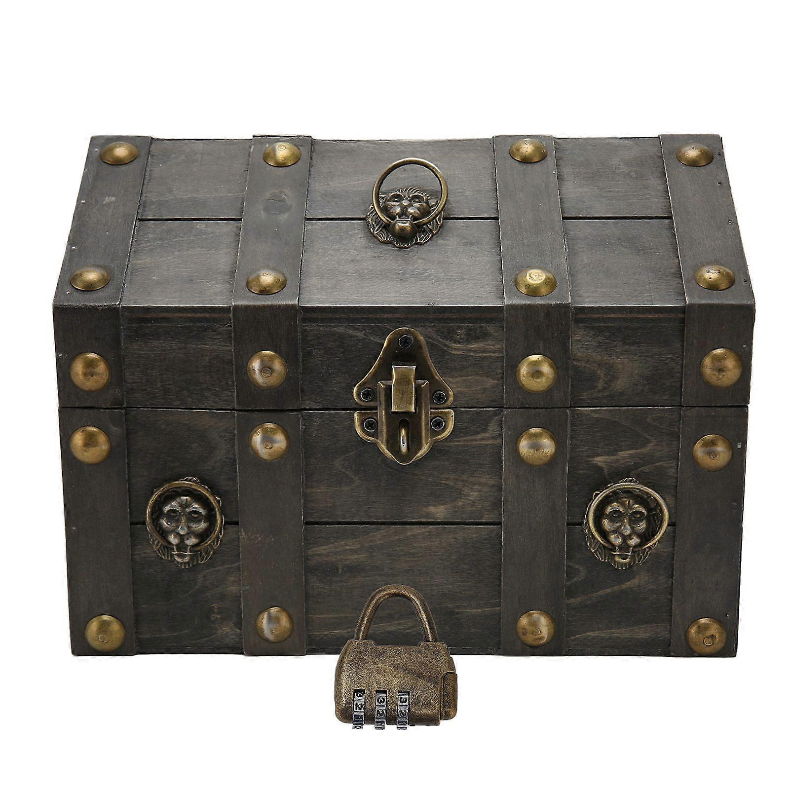 Wooden Treasure Chest Boxes Hand Crafted Vintage Wooden Box with Mini Metal Lock for Storing Jewelry Treasure Pearl