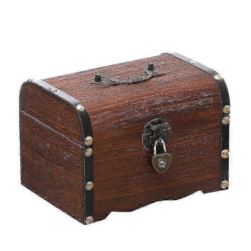 Wooden Treasure Chest Piggy Bank, Retro Handmade Solid Wood Safe Money Bank With Lock And Keys, 1pc-Good