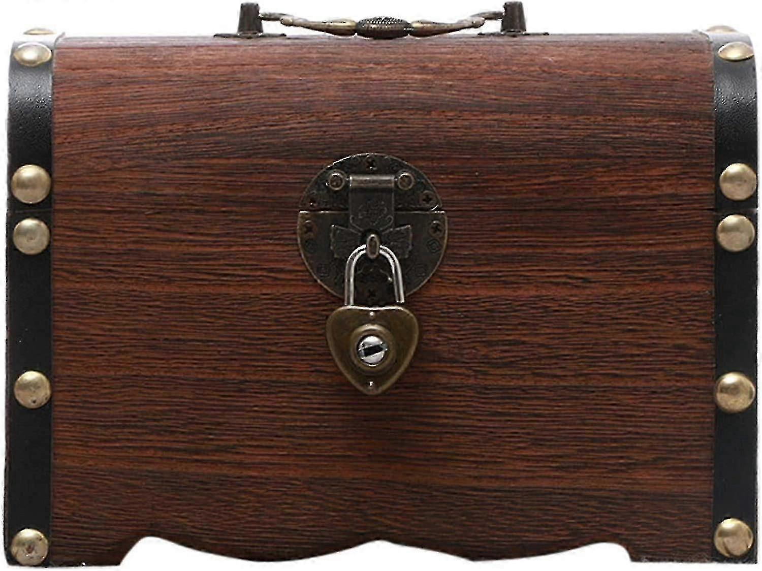Wooden Treasure Chest Piggy Bank, Retro Handmade Solid Wood Safe Money Bank With Lock And Keys, 1pc