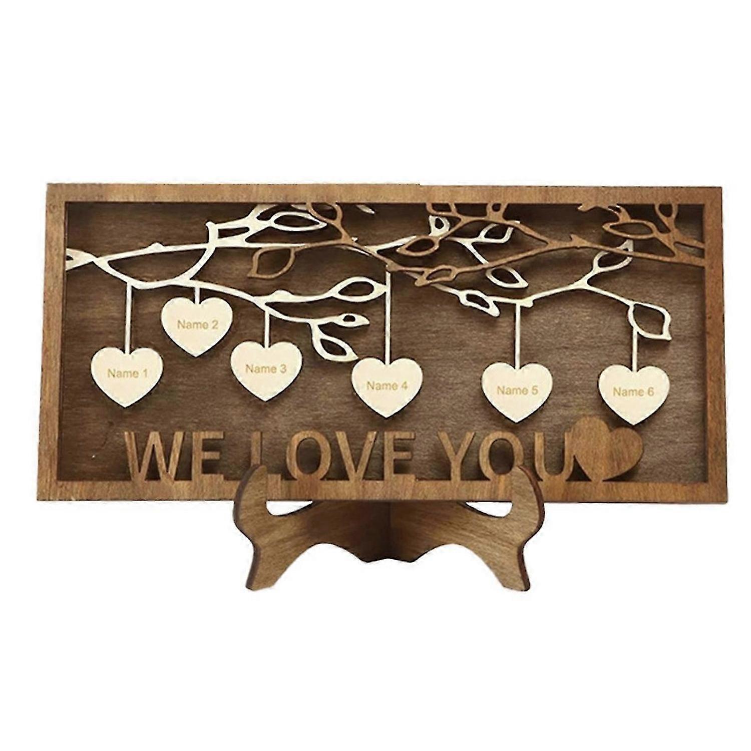 [Personalized Wooden Frame Plaque]you can engrave all your last names on it. [Perfect Mother's Day Gift]--This personalized family tree sign is in heart shape with meaningful and warm text, you can give it to your mom, grandma, aunt, on Mother's Day, birthday, anniversary, etc. Mother-in-law. [Wooden Family Tree Material]--Our personal name family trees are made of high-quality wooden materials, which are durable, unique in design and of high quality. All names and characters you customize are laser engraved. The name and words will remain on the wood forever, symbolizing the everlasting closeness between you and your family. Material: wood Color: as shown<br><br>Style:6 name<br><br>Package Contents: 1 x wooden plaque<br><br>Only the above package content, other products are not included. Note: Light reflection and different displays may cause the color of the item in the picture a little different from the real thing. The measurement allowed error is +/- 1-3cm.