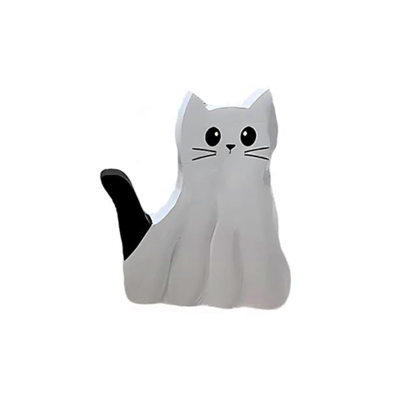 Wooden Ghost Cat Figurine, Halloween Ghost Cat Ornament Decor, Cute Cat Ghost Tiered Tray Decor, Handmade Cute Ghost Cat Statues for Cat Lover Creativ