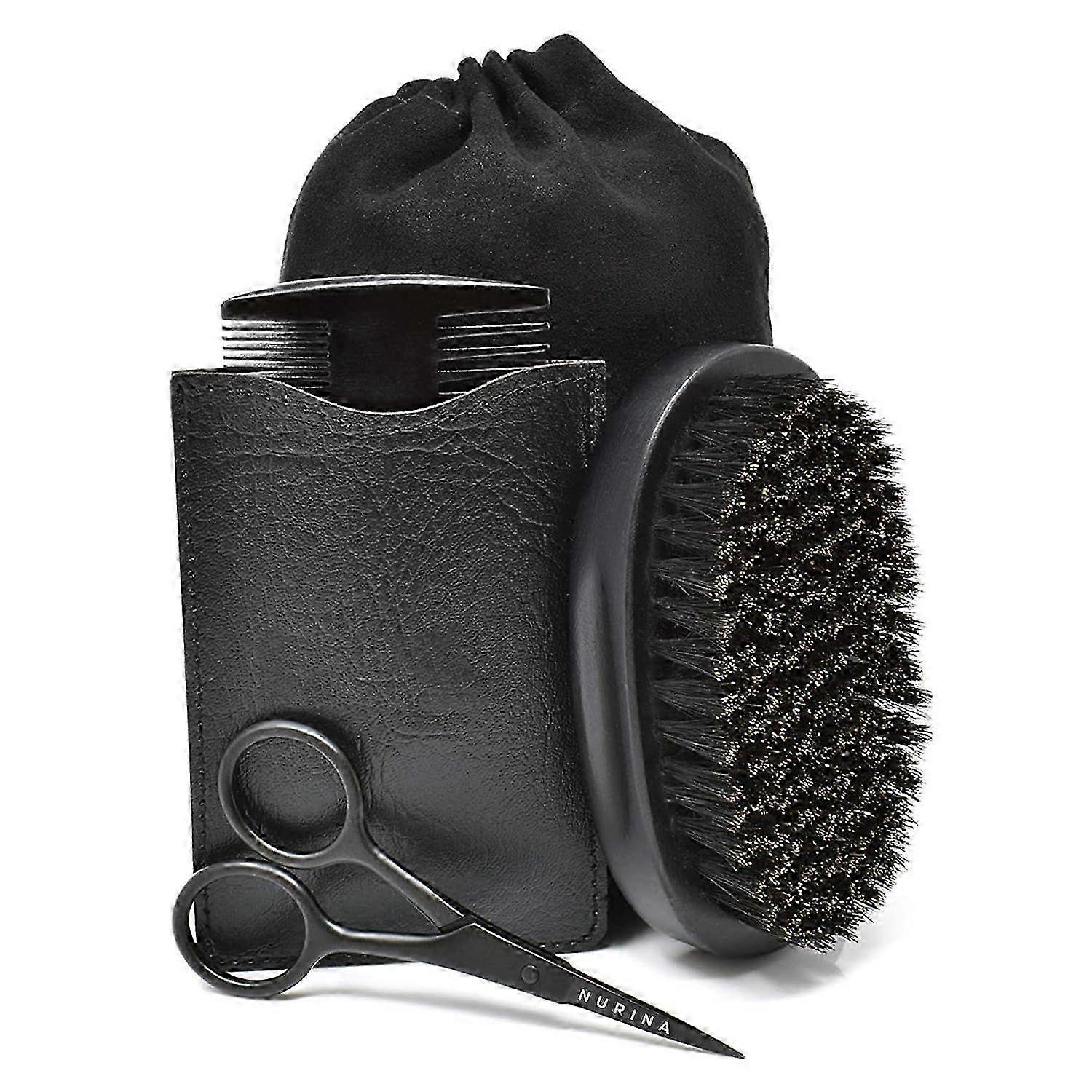 beard comb: woodPackage Dimensions:7.36 x 3.66 x 2.05 inches; 4.52 ouncesUPC:742383796070Manufacturer:NURINAASIN:B09T2NCZQ1 Natural Dense Boar Bristles Beard Brush NURINA beard grooming kit brush is designed using natural non-scratching dense boar bristles to thoroughly comb & groom beard and moustache. Bristles of beard brush compatible men are firm and long making them suitable compatible coarse, long, thin, & firm hair. A must-have kit compatible every gentleman!Easy To Grip Natural Wooden Brush Set Double-sided beard comb compatible men is designed using natural and sturdy wood to ensure it lasts long and provides satisfactory grooming. Anti-static moustache comb has wooden, non-slip, easy to work with grip to efcompatibletlessly comb through beard hair & get rid of tangles smoothly. Beard comb leather pouch compatible travel and safekeeping, is included.Stainless-Steel Beard Scissors With PVC Bag Holder Stainless-steel corrosion & rust proof beard scissors are ly sized to tackle unwanted Facial hair and give your moustache & beard shape. With its grip-friendly handle and pointed edges you will be able to achieve sharp look. Beard kit compatible men also has PVC scissors holder bag compatible safekeeping.Well-Groomed & Styled Beard Every Time - NURINA boar bristles brush and beard comb allow you to comb through facial hair, give your beard and moustache proper look, stimulate oil production, massage, and get rid of dirt and tangles while keeping your skin healthy and smooth. Wooden comb gradually soaks oil and aids in reducing damaged hair, split ends, and thinning hair.Travel-Friendly Beard Set Makes A Great Gift - Travel-friendly 6pcs beard trimming kit includes linen brush, leather comb, and PVC scissors pouch so you can store every item and take the kit anywhere you travel. A beard gift set compatible fathers day, anniversary, birthday, valentines day, Christmas, thanksgiving, or any other special occasion. Let them know you are fan of their beard!