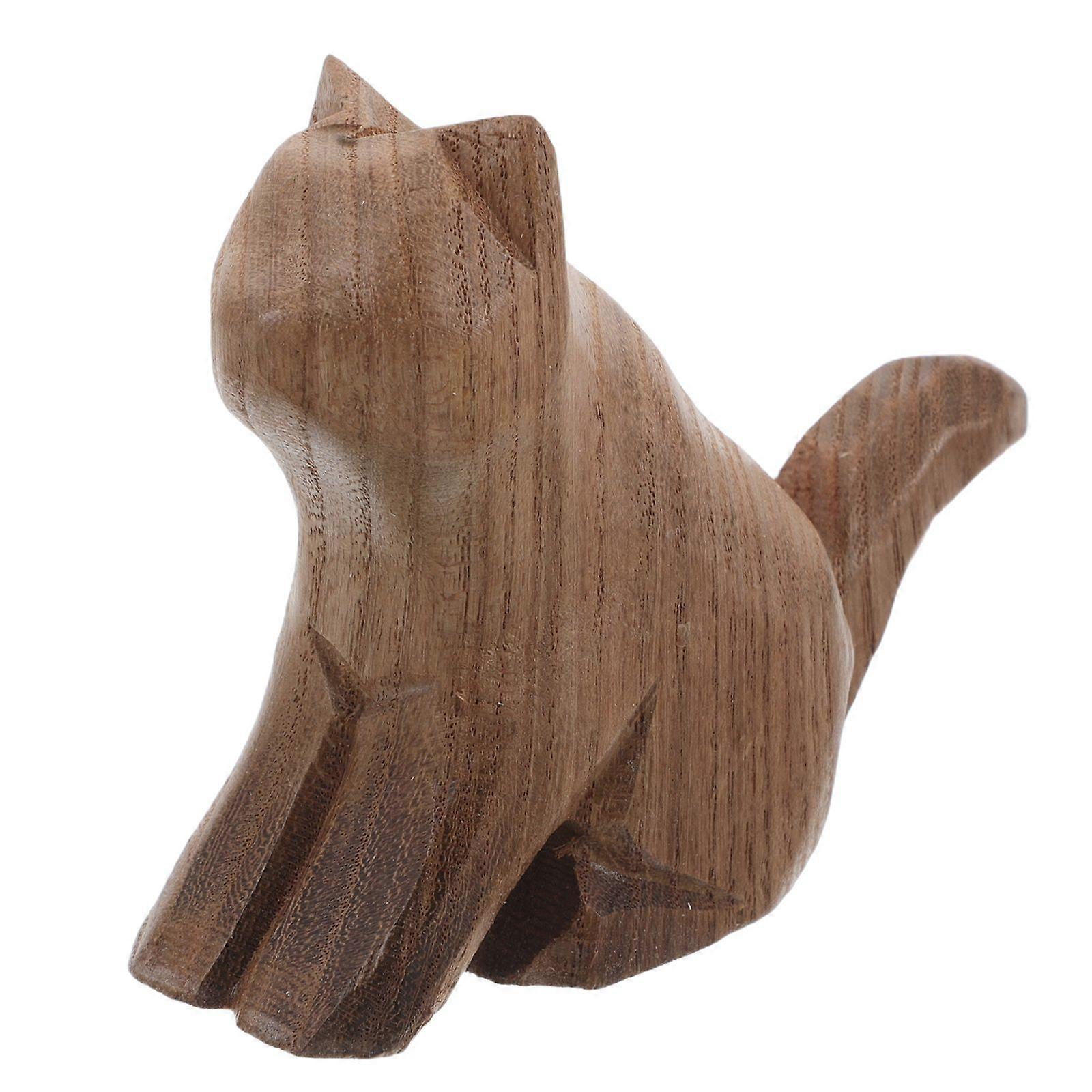 Wooden Cat Figurine Hand Carved Wood Cat Statue For Home Decor Cute Kitten Figures Office Desktop Ornament Table Decoration