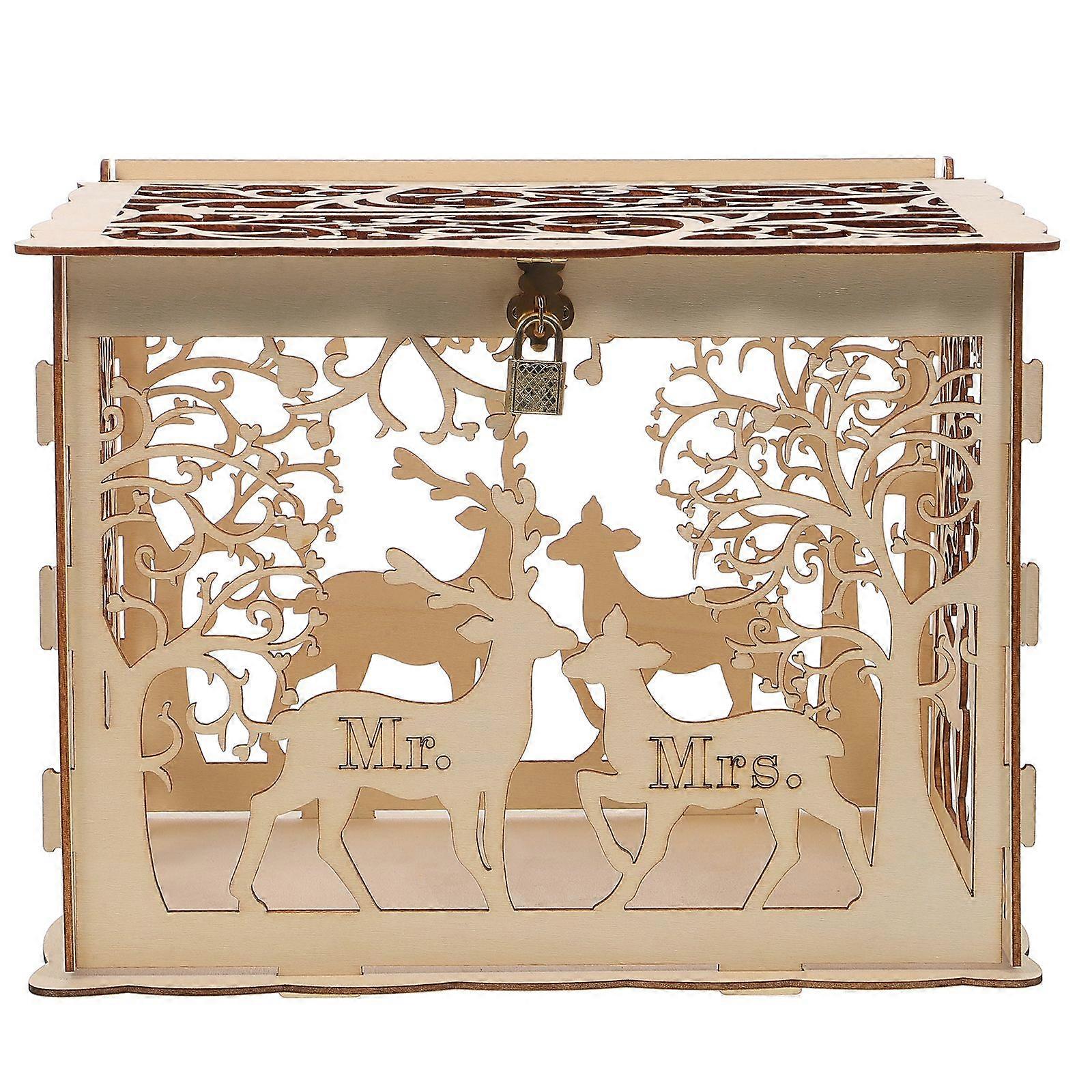Wooden Wedding Storage Box DIY Wedding Supplies Deer Box for Wedding Party (1 Key + 12 Rubber Rings, Large Size)