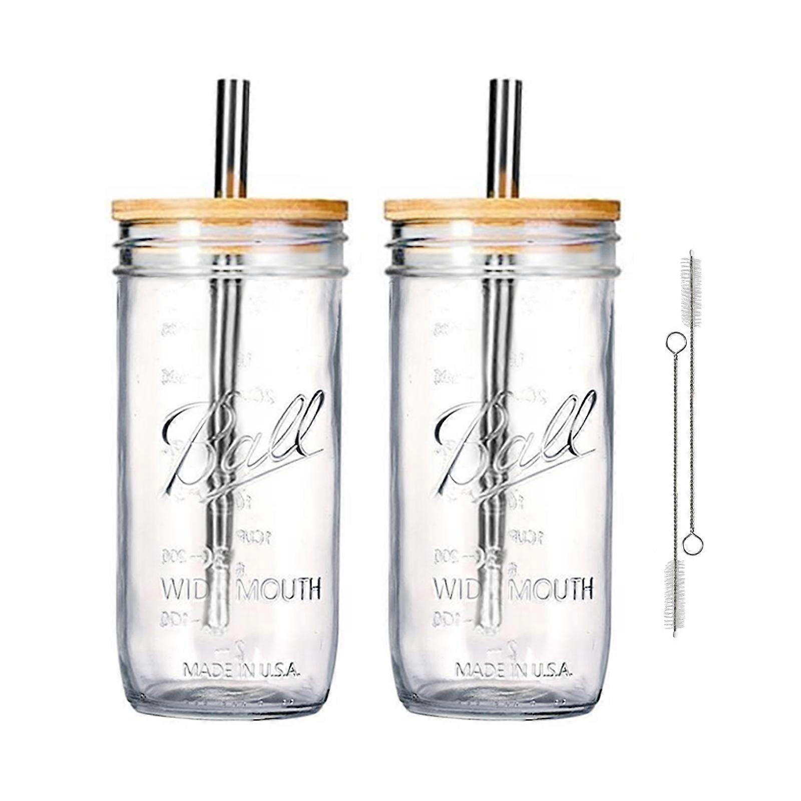 Set of 2 750ml Thick Glass Mason Cups with Wooden Lids