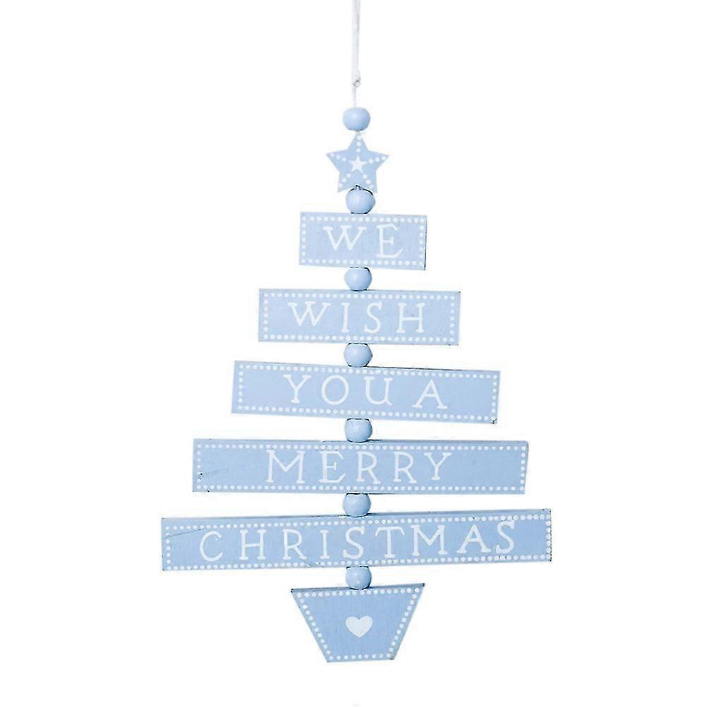Description This is a wooden pendant embellishments. These shaped ornaments are made of good-quality wood, lightweight and durable. You can embellish your house with these decoration on the wall, window, door, bookshelf and wherever you want. It comes with string for easy hanging. It is decoration for Christmas party. Features - Color: Sky-blue.- Material: Wood.- Size: About 27 x 11.5 x 0.3cm.- Happy new year Christmas tree decoration,Christmas gifts for children.- Wooden accessories for art and craft projects.- Perfect for Christmas tree embellishments and Christmas party hanging decorations.- Great addition to any room and will add joy to your home during the holidays.- Bring festive charm to your decorating space with this home accent.Packing list: 1 x Christmas pendant