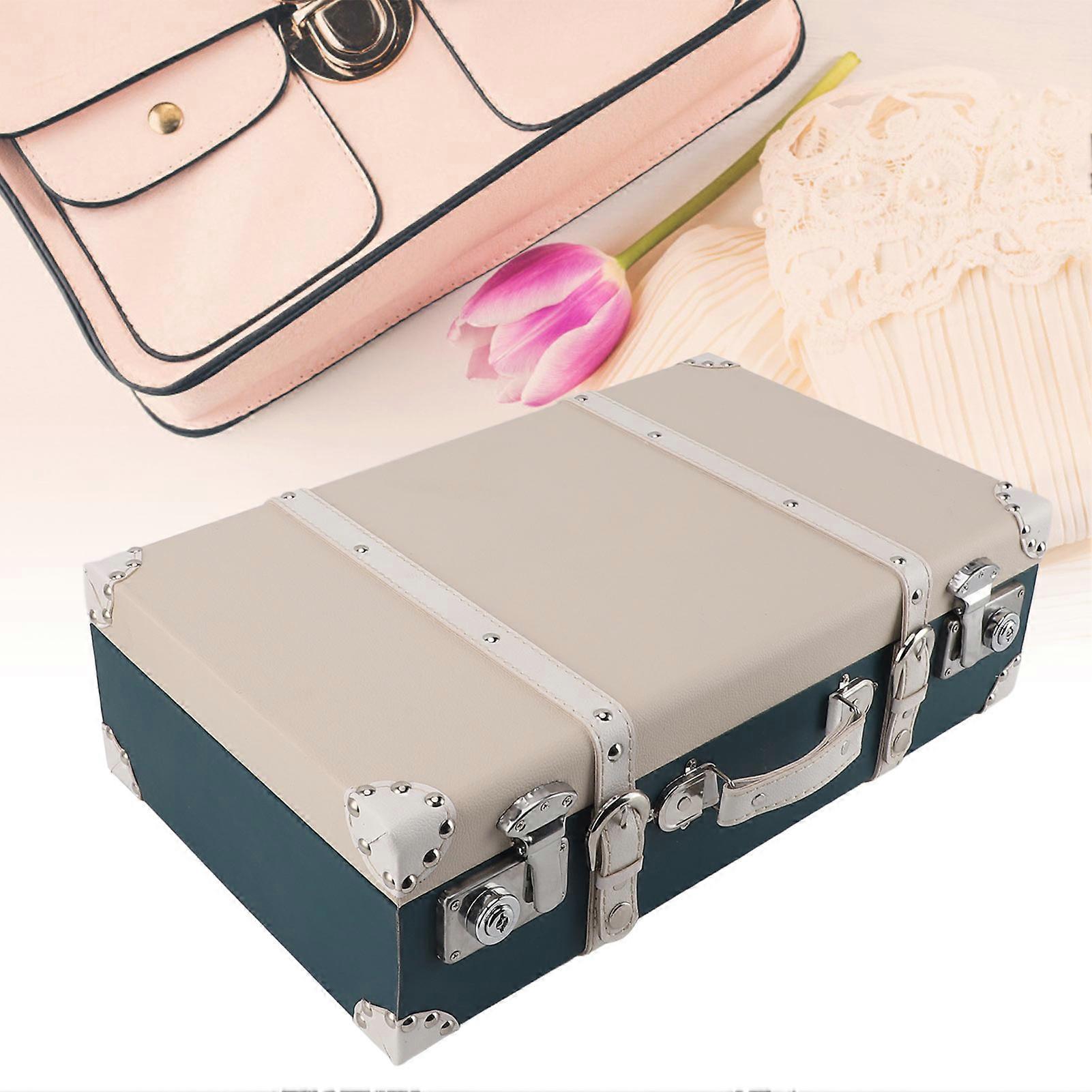 Wood Decorative Suitcases PU Leather European Small Suitcase Decorative Box with Straps for Travel Fleshcolor Dark Green