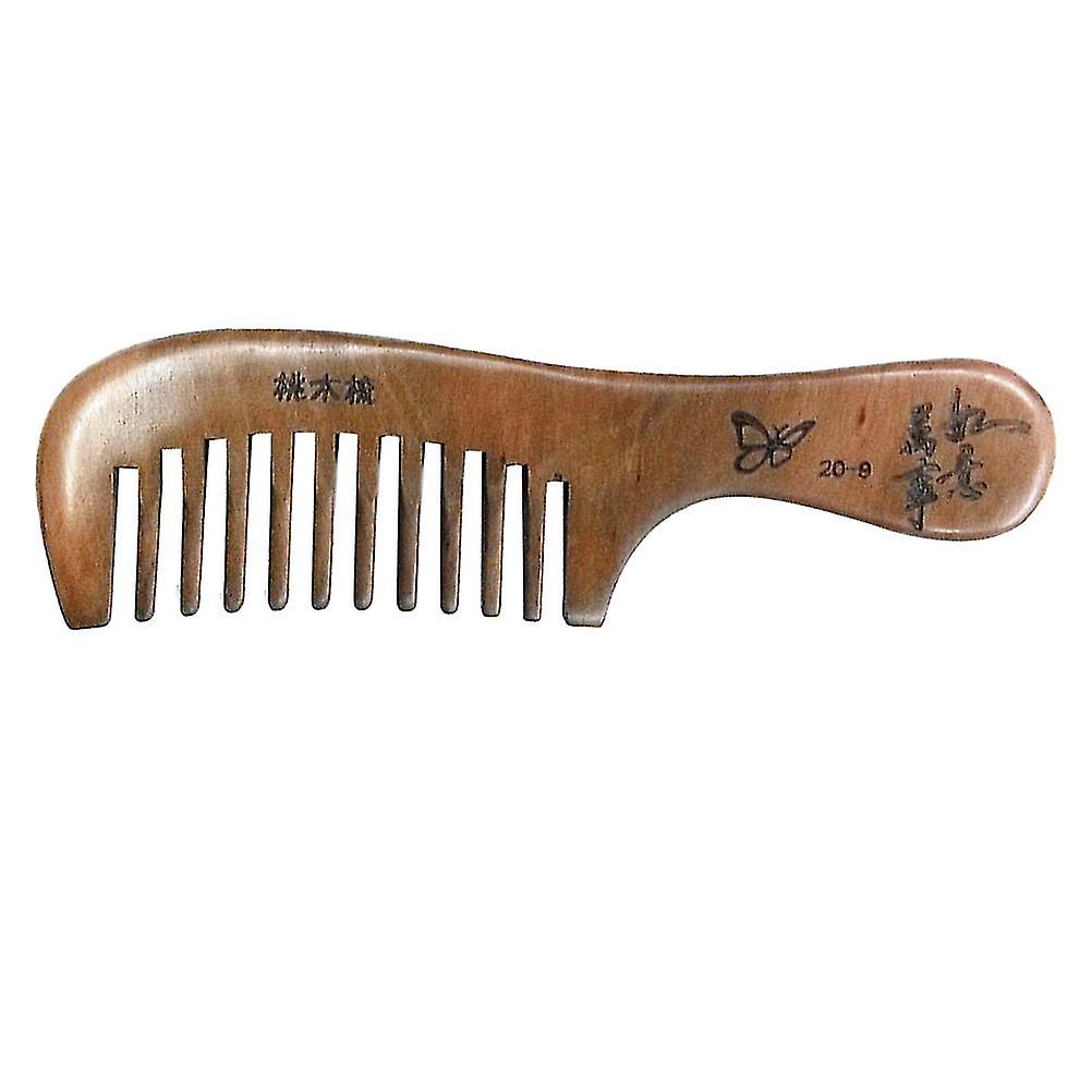 Made of peach wooden material with caring design which makes it unique and retro while using. for daily use.Smooth close comb teeth configuration protects your hair from tangling and offer comfortable massage experience for your scalp, which can help to stimulate blood circulation and relieve the headache. Features - Color: As shown.- Material: Peach Wood.- Size: About 19 x 5x 1cm.- Made of natural peach wood material, make it skin-friendly and beneficial to your hair and scalp.- Smooth close comb teeth configuration protects your hair from tangling.- Offer comfortable massage experience when using.- Help to stimulate blood circulation and relieve the headache.- Unique carving, chic, exquisite and retro.Packing list: 1 x wooden comb