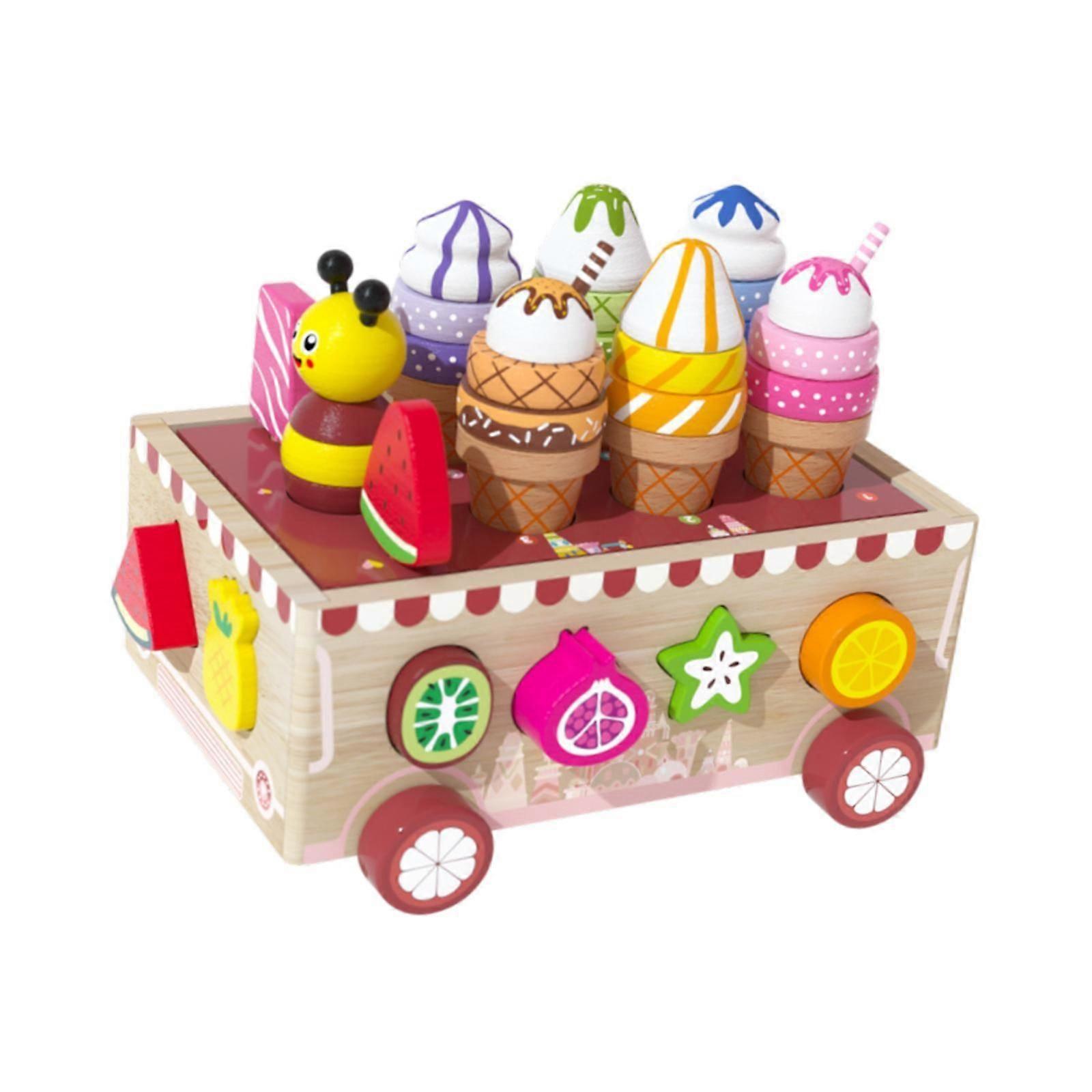 Wooden Ice Cream Cart Ice Cream Sweet Treats for Preschool Children Age 2-5