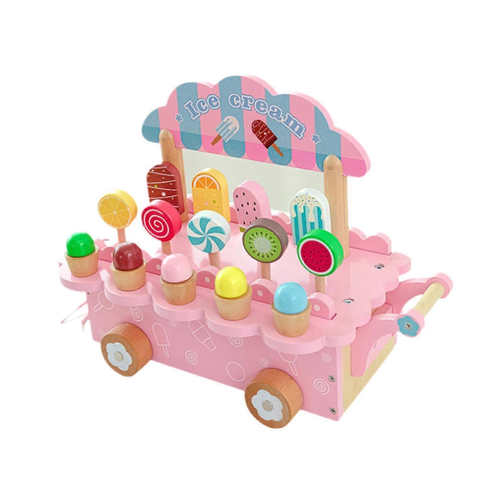 Wooden Ice Cream Set Education Pretend Play Toys for Children Birthday Gifts pink