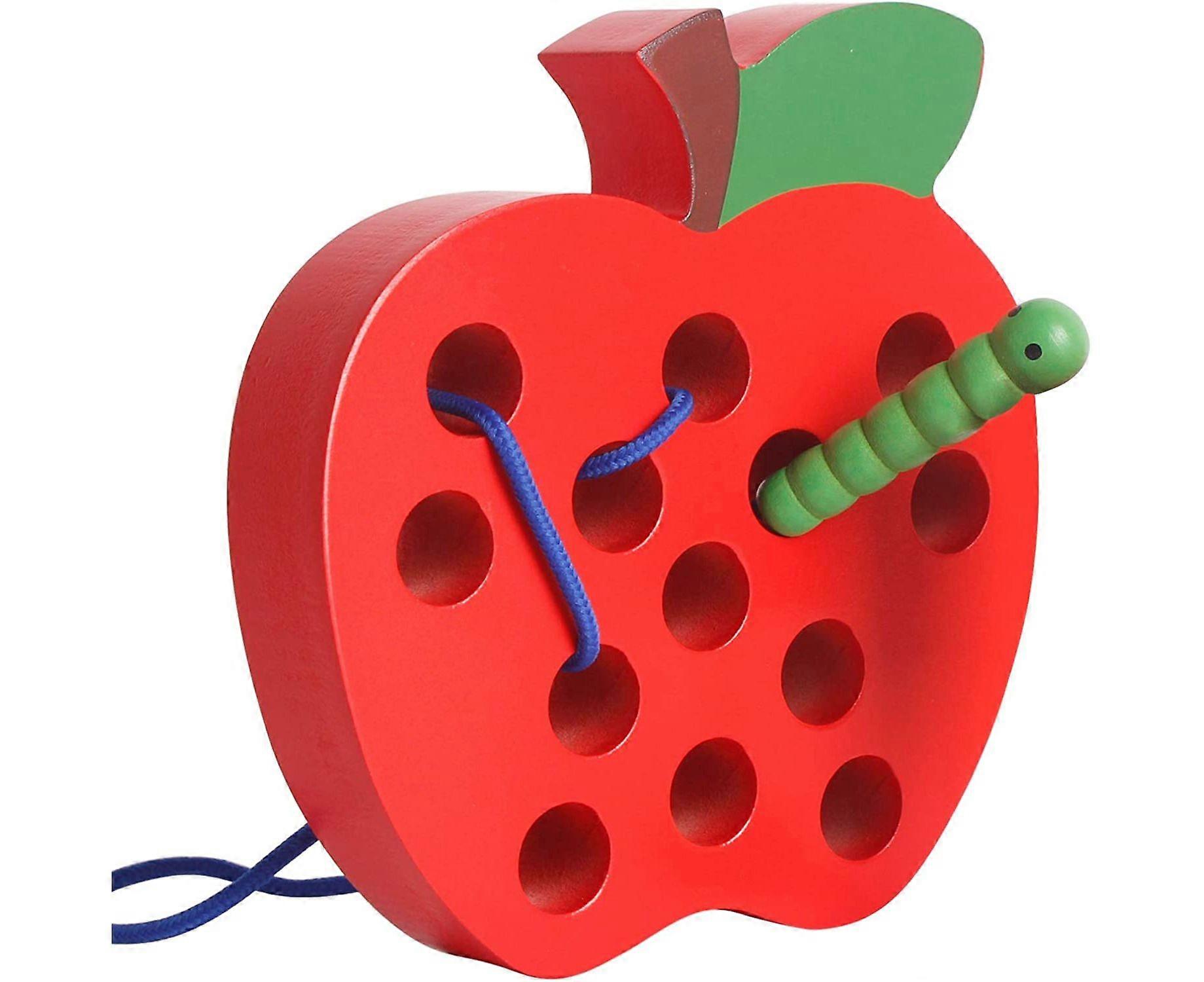 Wooden Apple Lacing Threading Weaving Worm Toy Fun Learning Travel Toy Fine Motor Skill Educational Gift 3 Years Old Kids Toddler Toys