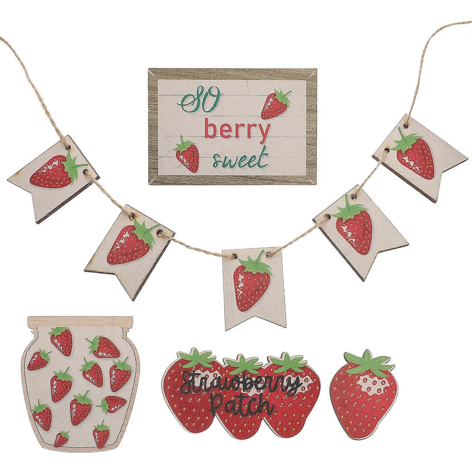 Wooden Strawberry Decorations Tiered Tray Decor for 5Sets Assorted Color Wood